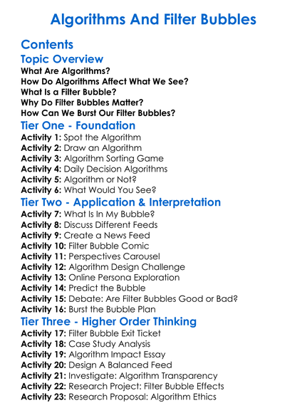 Algorithms And Filter Bubbles Worksheet Activity Booklet