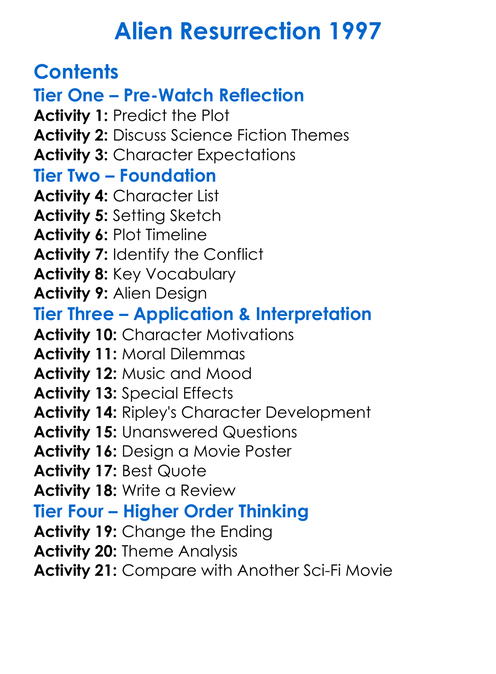 Alien Resurrection 1997 Worksheet Activity Booklet