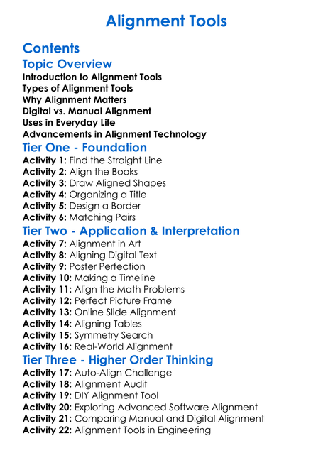 Alignment Tools Worksheet Activity Booklet