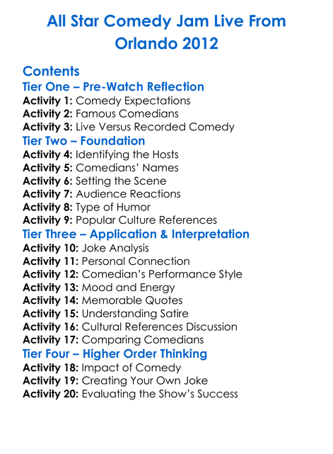 All Star Comedy Jam Live From Orlando 2012 Worksheet Activity Booklet