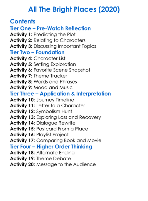 All The Bright Places 2020 Worksheet Activity Booklet