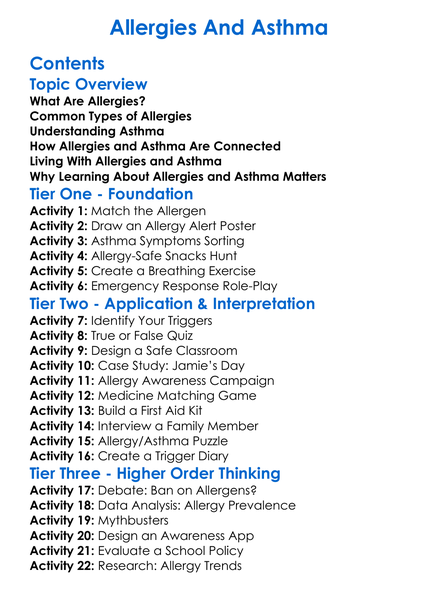 Allergies And Asthma Worksheet Activity Booklet