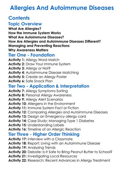 Allergies And Autoimmune Diseases Worksheet Activity Booklet