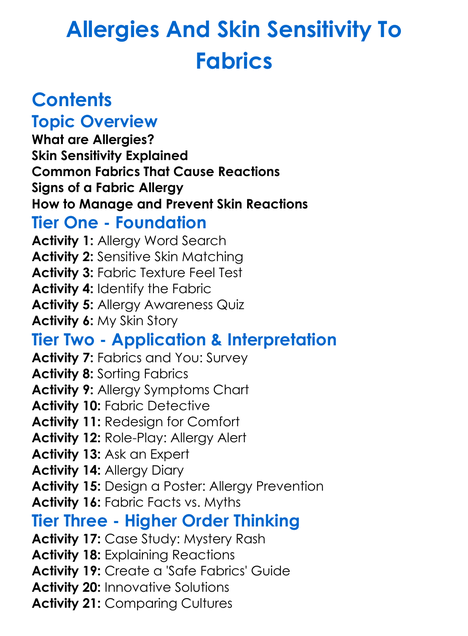 Allergies And Skin Sensitivity To Fabrics Worksheet Activity Booklet