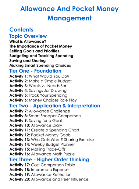 Allowance And Pocket Money Management Worksheet Activity Booklet