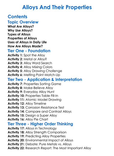 Alloys And Their Properties Worksheet Activity Booklet