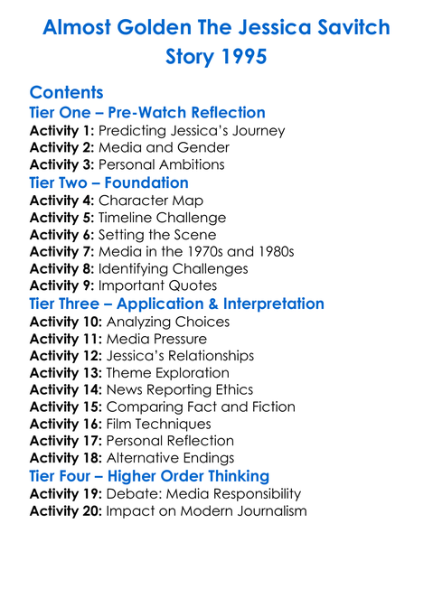 Almost Golden The Jessica Savitch Story 1995 Worksheet Activity Booklet