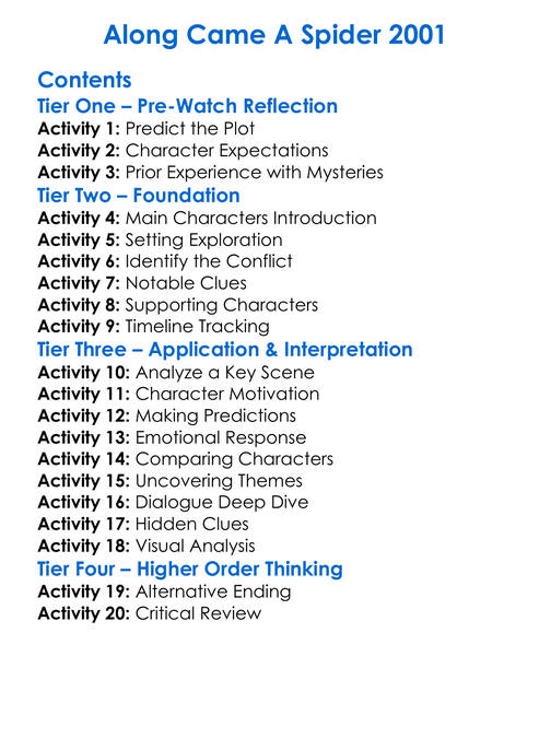 Along Came A Spider 2001 Worksheet Activity Booklet