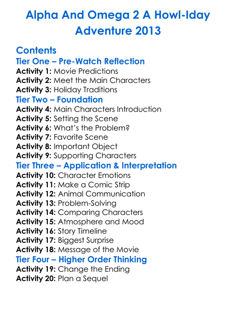 Alpha And Omega 2 A Howl-Iday Adventure 2013 Worksheet Activity Booklet