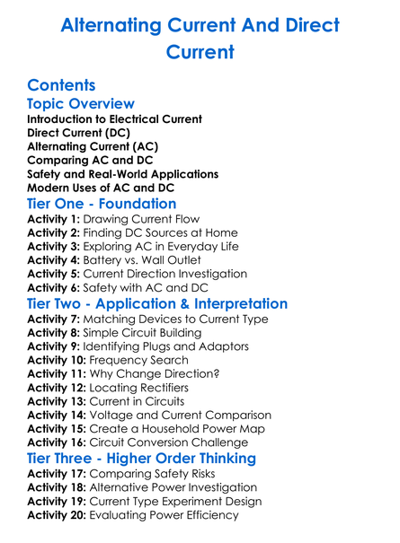 Alternating Current And Direct Current Worksheet Activity Booklet