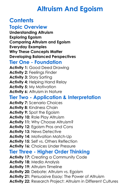 Altruism And Egoism Worksheet Activity Booklet
