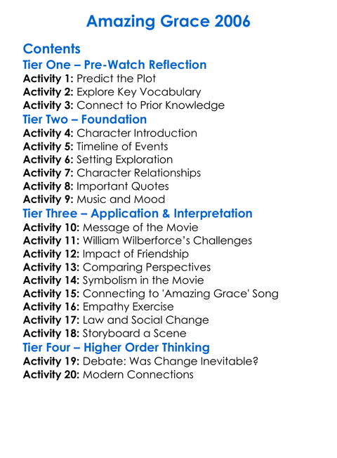 Amazing Grace 2006 Worksheet Activity Booklet