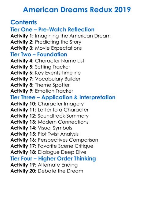 American Dreams Redux 2019 Worksheet Activity Booklet