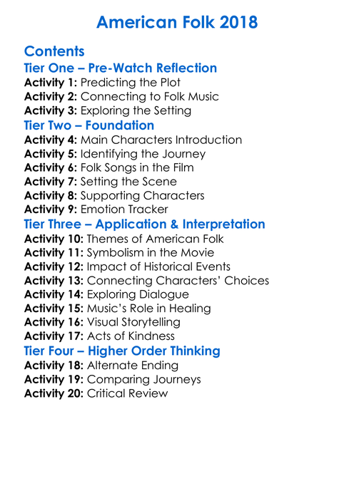 American Folk 2018 Worksheet Activity Booklet