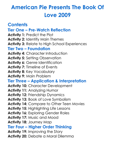 American Pie Presents The Book Of Love 2009 Worksheet Activity Booklet
