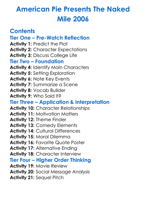 American Pie Presents The Naked Mile 2006 Worksheet Activity Booklet