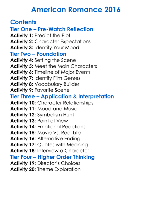 American Romance 2016 Worksheet Activity Booklet