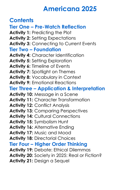 Americana 2025 Worksheet Activity Booklet