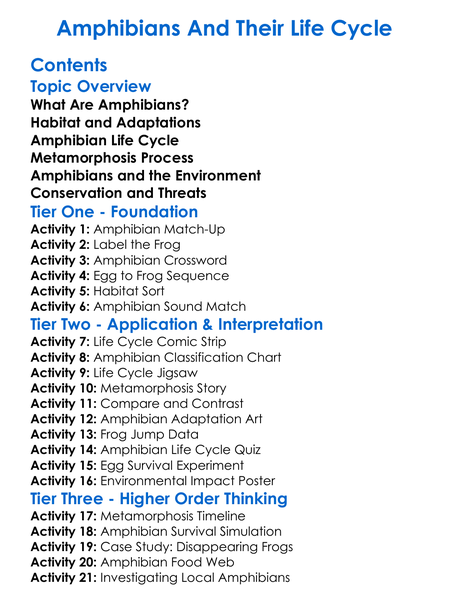 Amphibians And Their Life Cycle Worksheet Activity Booklet