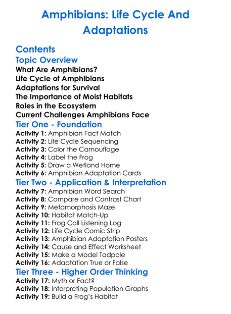 Amphibians Life Cycle And Adaptations Worksheet Activity Booklet