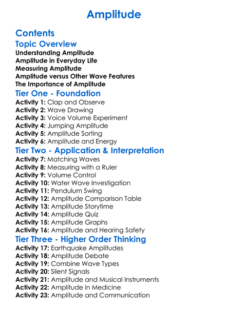 Amplitude Worksheet Activity Booklet