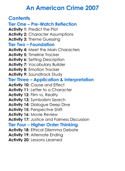 An American Crime 2007 Worksheet Activity Booklet