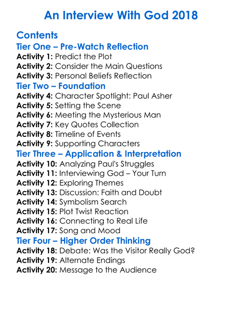 An Interview With God 2018 Worksheet Activity Booklet