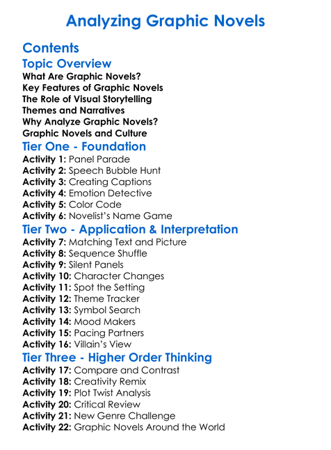Analyzing Graphic Novels Worksheet Activity Booklet