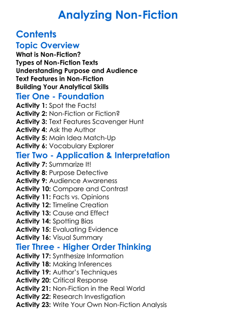Analyzing Non-Fiction Worksheet Activity Booklet