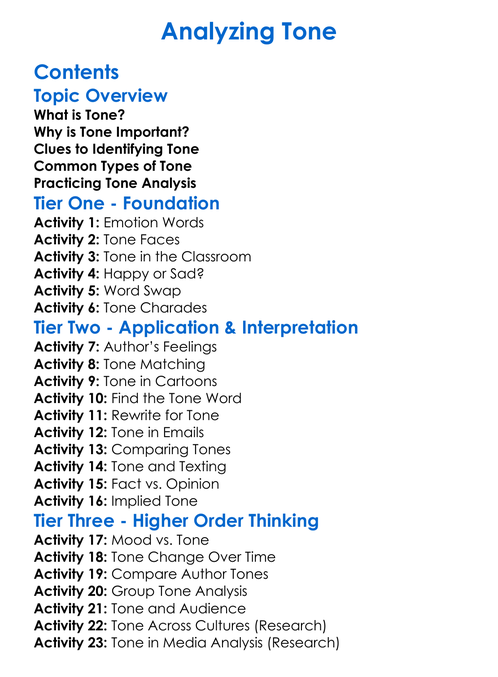 Analyzing Tone Worksheet Activity Booklet