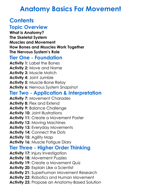Anatomy Basics For Movement Worksheet Activity Booklet