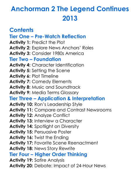 Anchorman 2 The Legend Continues 2013 Worksheet Activity Booklet