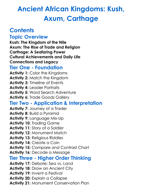 Ancient African Kingdoms Kush Axum Carthage Worksheet Activity Booklet