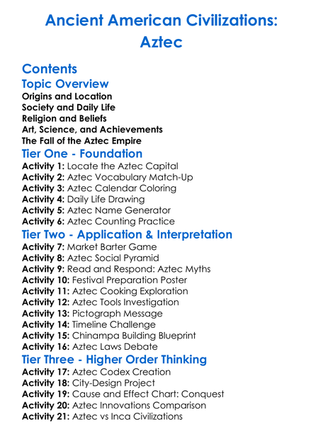 Ancient American Civilizations Aztec Worksheet Activity Booklet