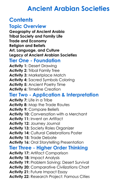 Ancient Arabian Societies Worksheet Activity Booklet