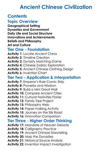 Ancient Chinese Civilization Worksheet Activity Booklet