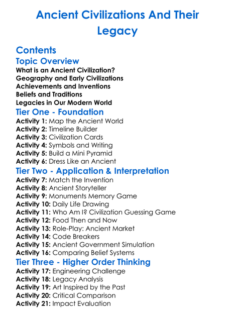 Ancient Civilizations And Their Legacy Worksheet Activity Booklet