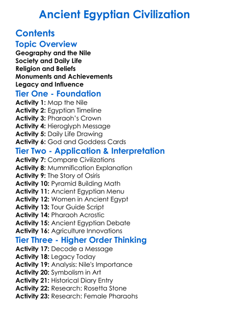 Ancient Egyptian Civilization Worksheet Activity Booklet