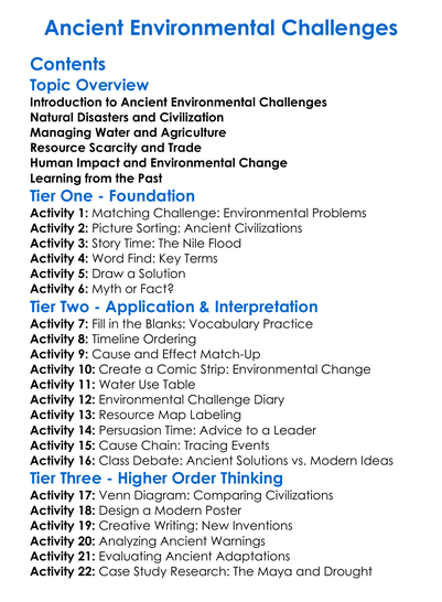 Ancient Environmental Challenges Worksheet Activity Booklet