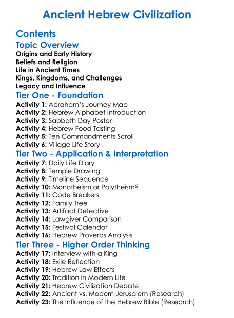 Ancient Hebrew Civilization Worksheet Activity Booklet