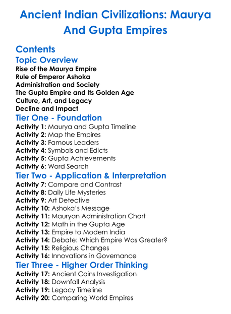 Ancient Indian Civilizations Maurya And Gupta Empires Worksheet Activity Booklet