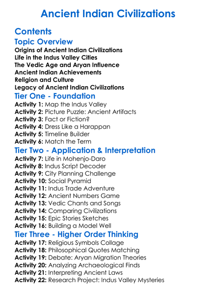 Ancient Indian Civilizations Worksheet Activity Booklet