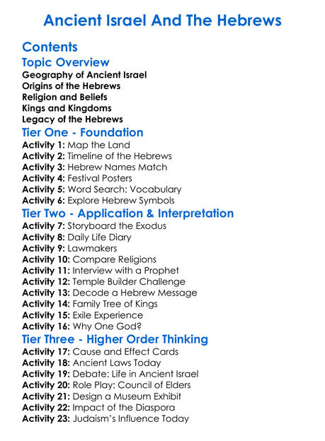 Ancient Israel And The Hebrews Worksheet Activity Booklet