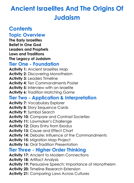 Ancient Israelites And The Origins Of Judaism Worksheet Activity Booklet