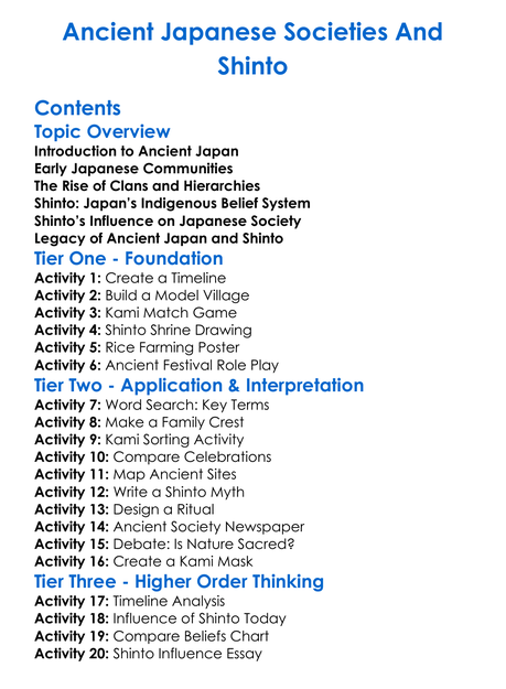 Ancient Japanese Societies And Shinto Worksheet Activity Booklet