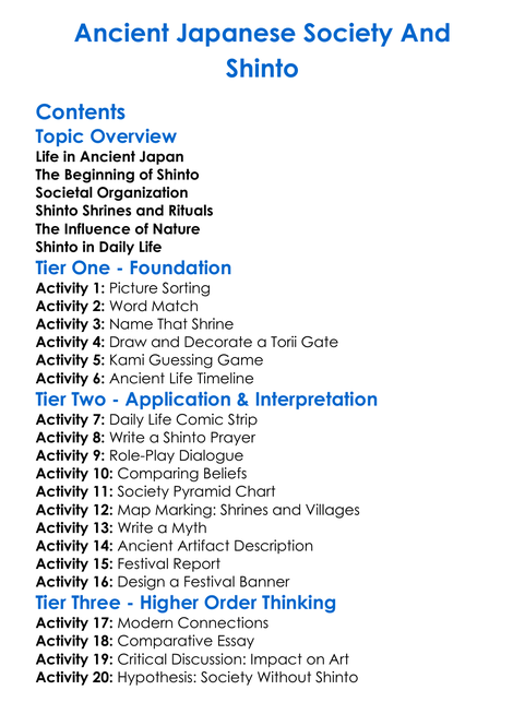Ancient Japanese Society And Shinto Worksheet Activity Booklet