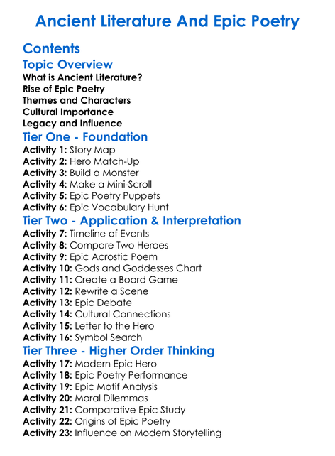Ancient Literature And Epic Poetry Worksheet Activity Booklet