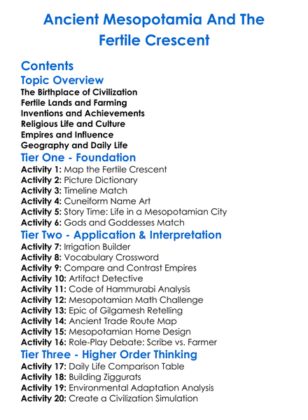 Ancient Mesopotamia And The Fertile Crescent Worksheet Activity Booklet