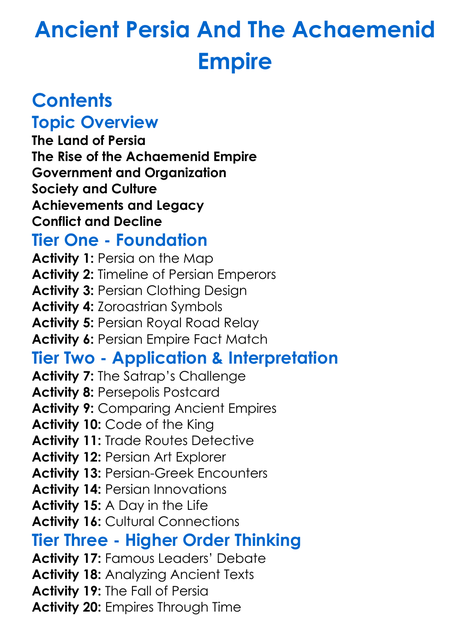 Ancient Persia And The Achaemenid Empire Worksheet Activity Booklet