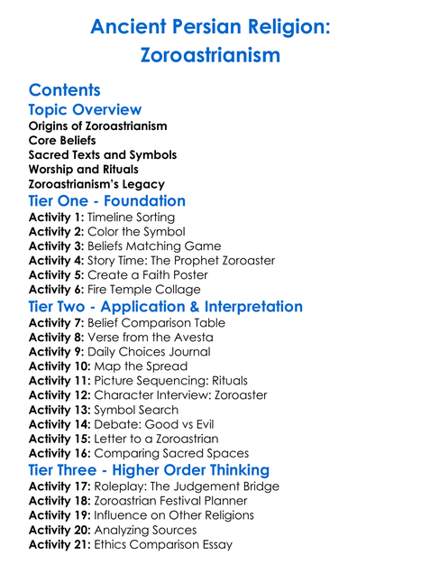 Ancient Persian Religion Zoroastrianism Worksheet Activity Booklet